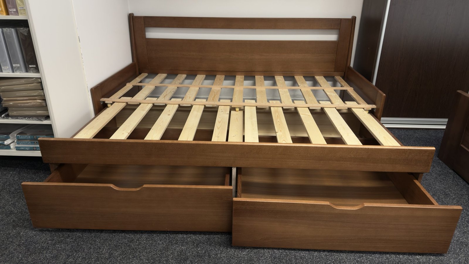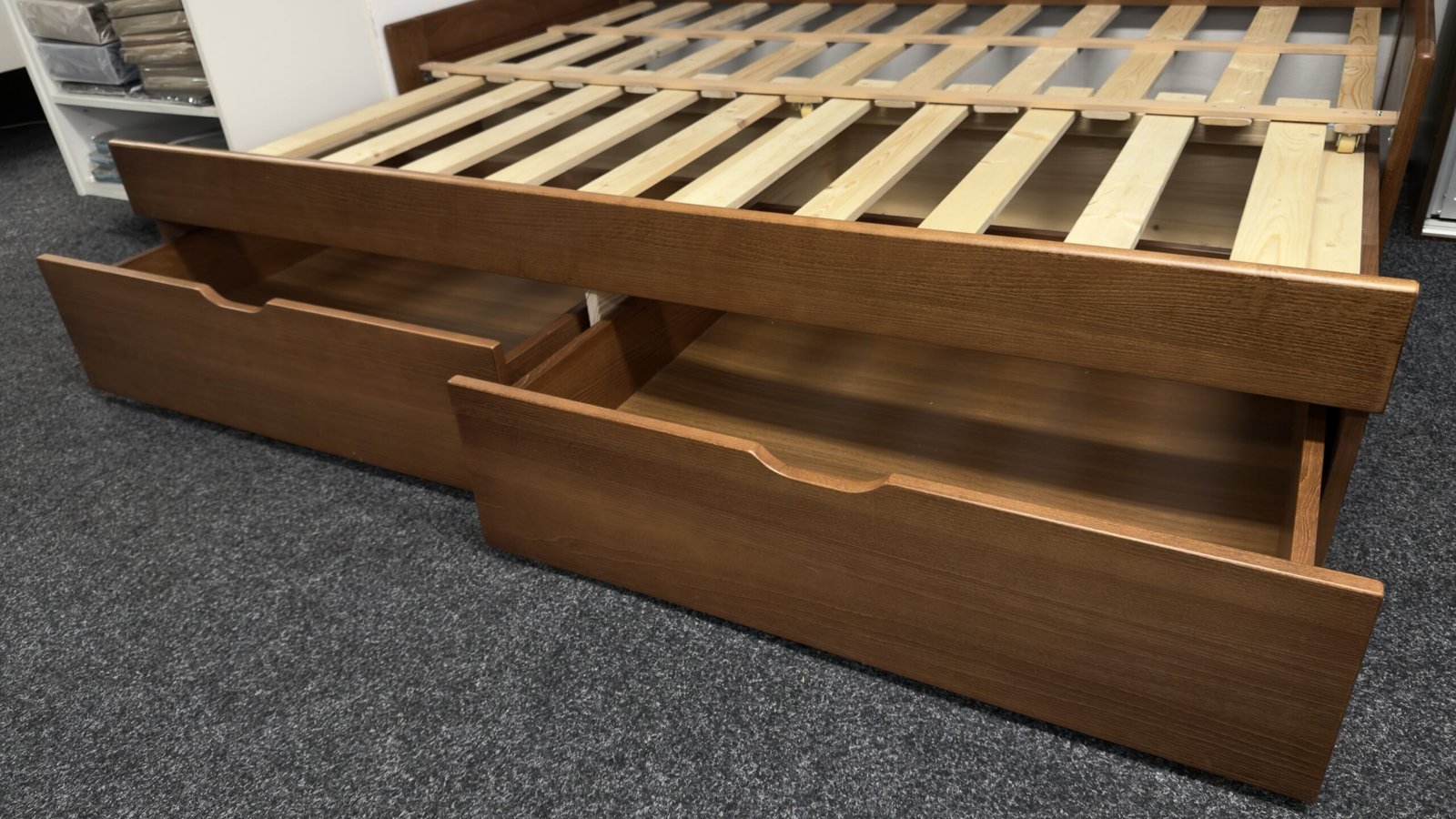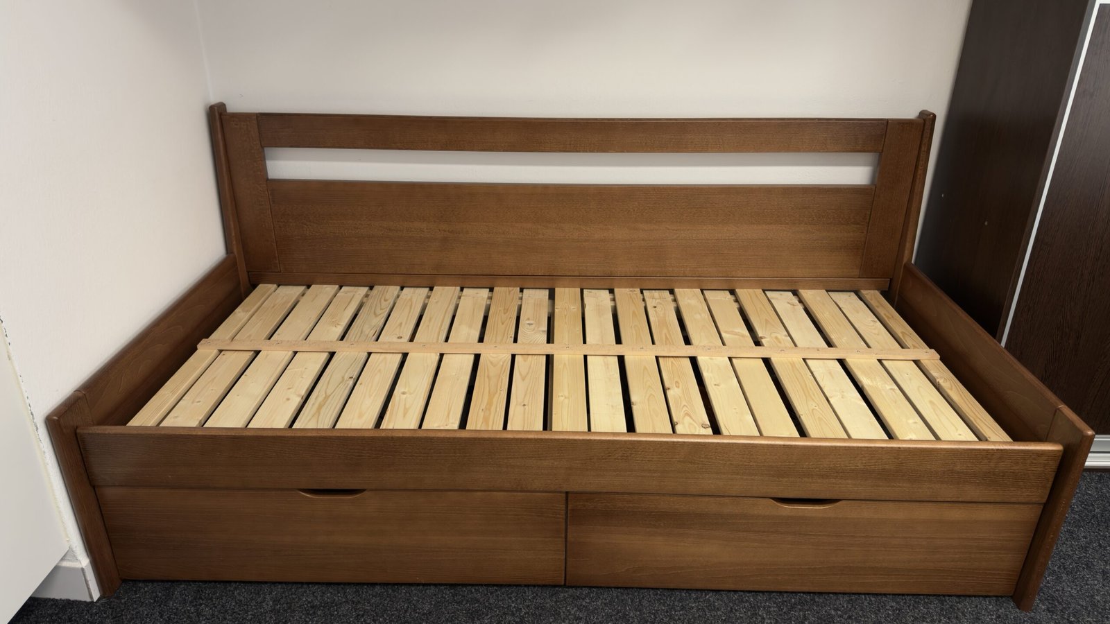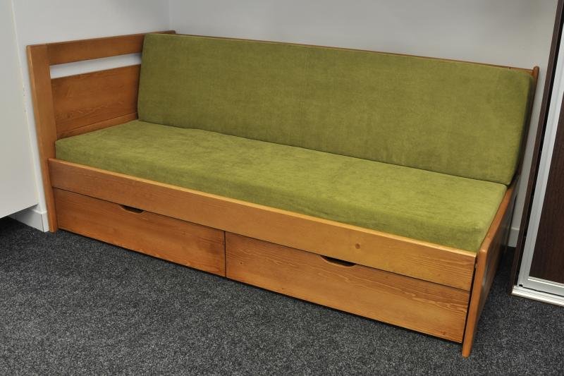 • rozkládací gauč Róza: provedení smrk, masiv, lak, moření kaštan