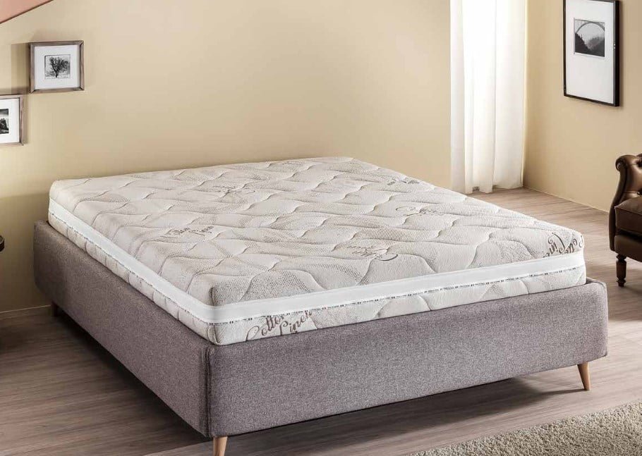 Matrace obsahuje paměťovou pěnu buď v jádře, nebo prošitou přímo v potahu matrace.