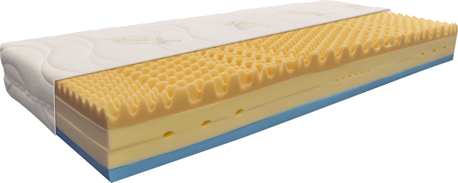 Ložná plocha je zhotovena z 3cm vrstvy líné pěny (hustota 45 kg/m3) s paměťovým efektem. Přizpůsobivá visco pěna dokonale kopíruje tvar vašeho těla v jakékoliv pozici a nevytváří protitlak a je tak vhodná pro osoby citlivé na otlačeniny. Díky rovnoměrnému rozložení váhy pozitivně působí na krevní oběh, umožňuje lepší prokrvení a tím pádem lepší relaxaci svalstva a pohybového aparátu a umocňuje pocit odpočinku během spánku.