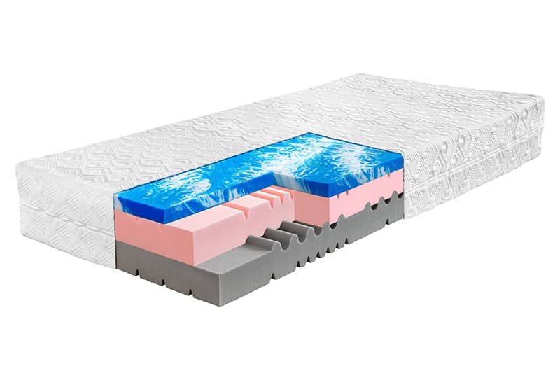• GT pěna obj. hmotnost 50 kg/m3 (4 cm) / studená HR pěna obj. hmotnost 50 kg/m3 (10 cm) / LS pěna (vysoce kvalitní HR pěna) obj. hmotnost 55 kg/m3 (10 cm)