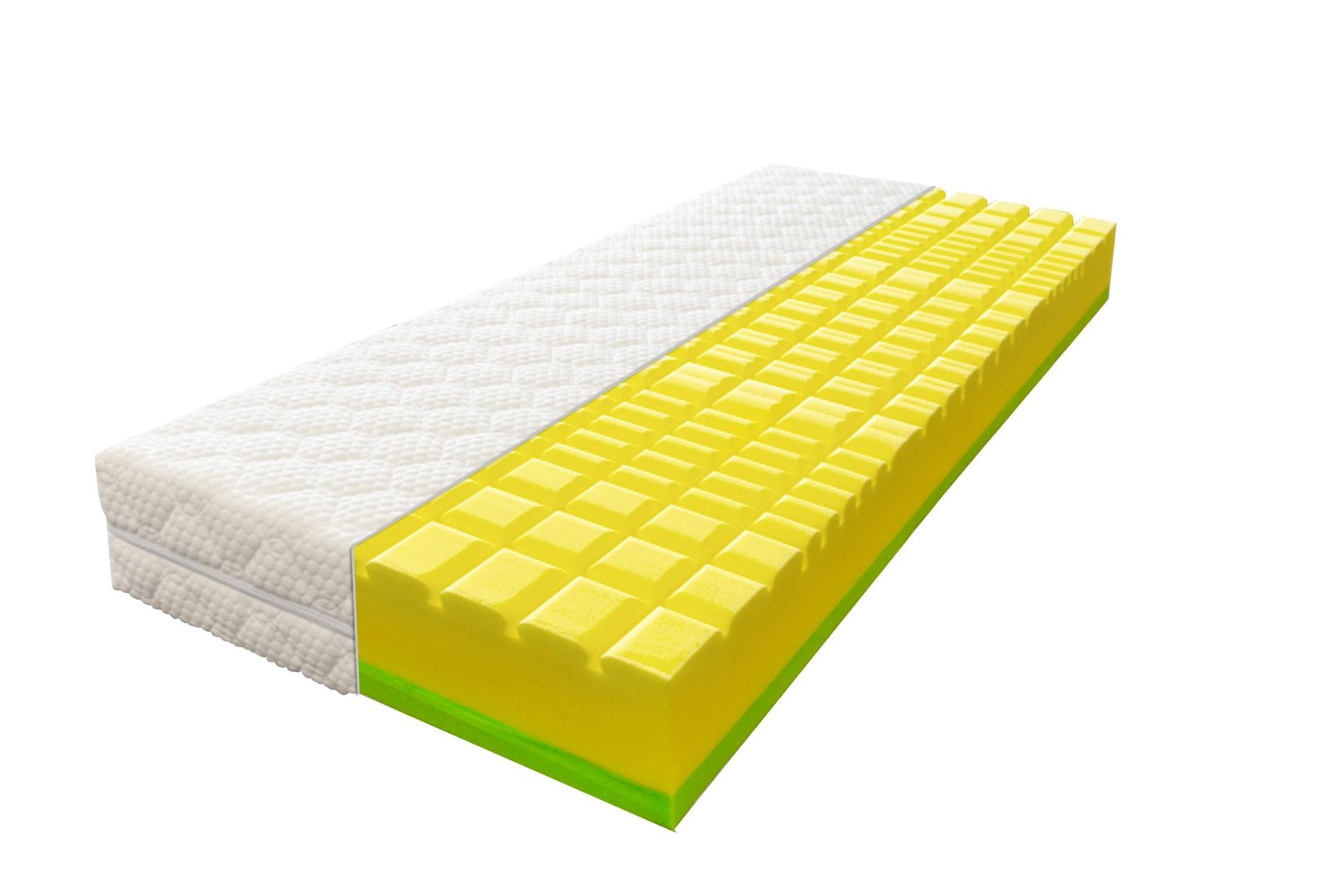 Pěnová matrace je vyrobena z kvalitní studené pěny a vrstvy paměťové pěny. Je určena všem, kteří preferují měkčí lůžko. Porézní struktura studené pěny zaručuje vzdušnost, vyšší životnost a materiálovou stálost matrace. Jádro je profilováno do sedmi zón, což při měkkosti jádra zaručuje naprosto dokonalé kopírování těla a zároveň optimální oporu těla. Tato matrace dokonale pracuje s lamelovým roštem.
