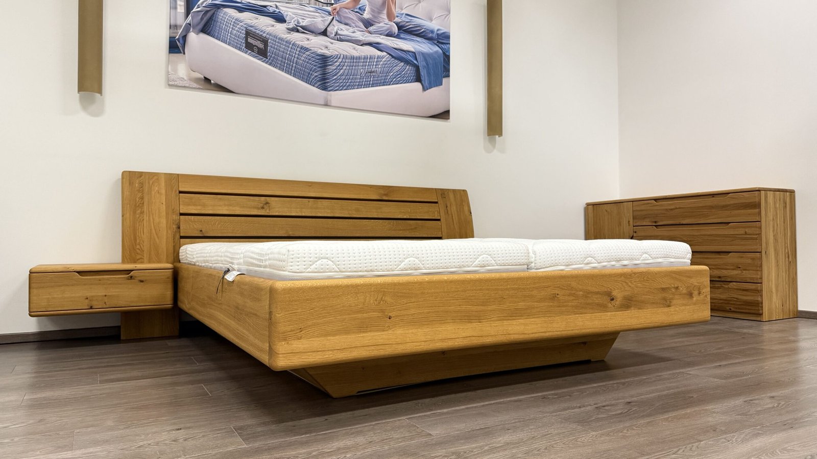 Postel z masivu Flabo je vyrobena z prvotřídního dubového dřeva, které zajišťuje výjimečnou pevnost a dlouhou životnost. Její elegantní design s čistými liniemi a precizním zpracováním dodá vaší ložnici nádech sofistikovanosti a komfortu.