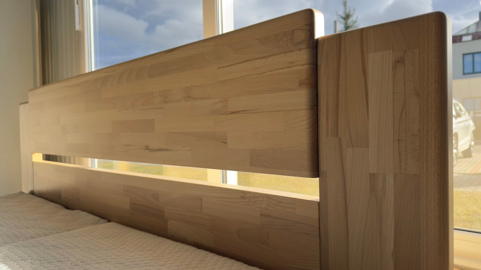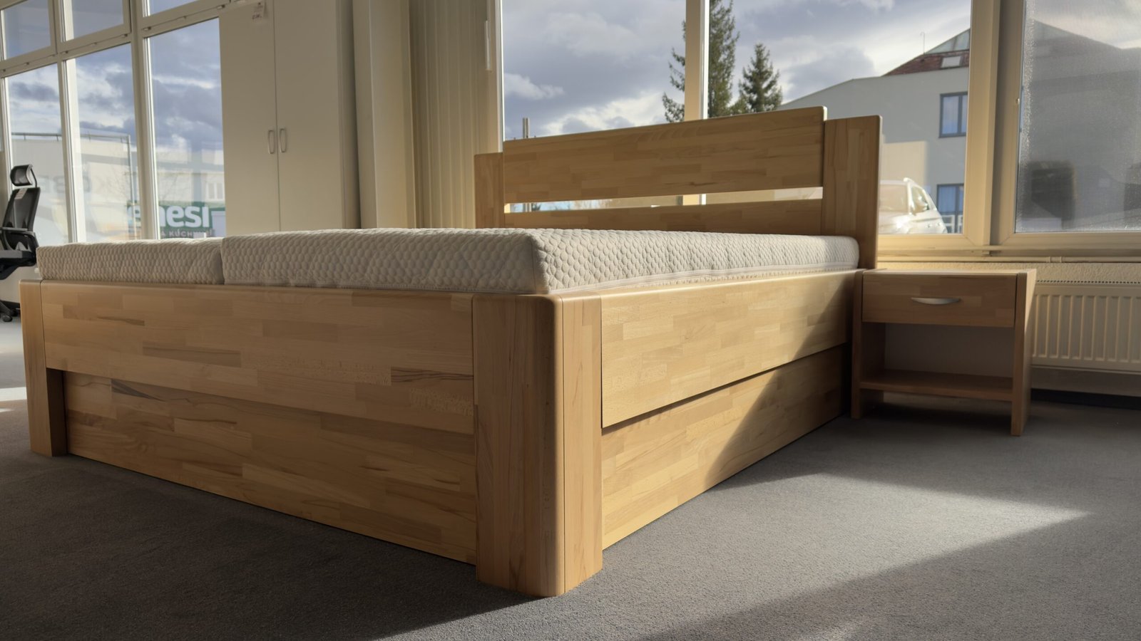 - Odolnost a stabilita: Kvalitní jádrový bukový masiv zajišťuje dlouhou životnost a pevnost postele.
