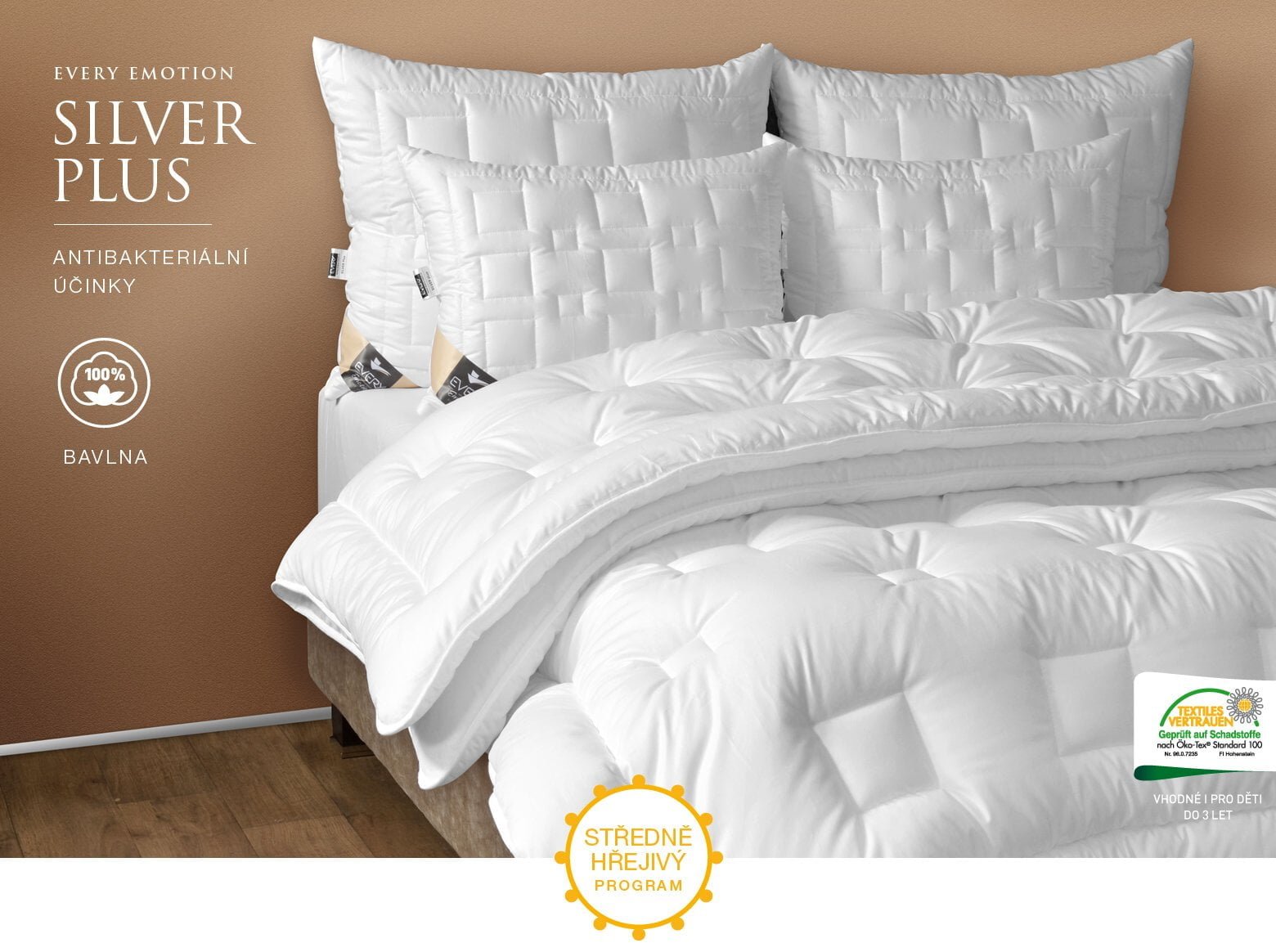 Přikrývka Calm je konstrukčně uzpůsobena tak, aby vynikl pružící efekt jemných profilovaných čtyřdutinkových dutých vláken every Fibre LOFT s výbornými tepelně izolačními vlastnostmi a odolností vůči mikroorganismům. Bavlněná povrchová tkanina a ergonomický způsob prošití zajišťuje dobrou splývavost přikrývky a stabilitu její náplně. Rouno náplně zůstává rovnoměrně rozložené.