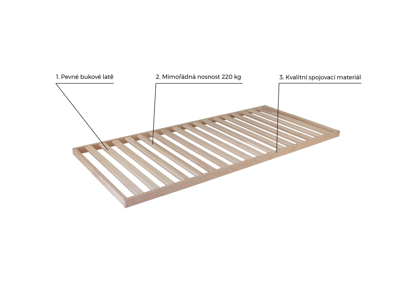 Celobukový rošt s mimořádnou výdrží a odolností díky pevnému bukovému dřevu a kvalitním spojovacím materiálům. Rošt Maximus disponuje nejvyšší nosností v naší nabídce a odpovídá tak vysokým nárokům na zatížení. Speciální zesílená konstrukce poskytuje mimořádnou nosnost až 220 kg. Rošt se skládá ze 17 latí z masivního bukového dřeva. Každá lať je uchycena 4 kusy kvalitního spojovacího materiálu. Vhodný pro zdravý spánek dětí a teenegerů či osob s vyšší hmotností.