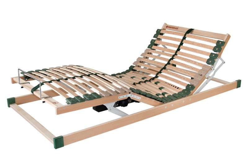 Pohodlný a odolný motorový rošt s pouzdry uloženými nad bočnicí poskytuje vyšší komfort při spánku. Motorový rošt umožňuje nezávislé polohování hlavy a nohou. Funkce MEMORY nabízí možnost uložení jedné pozice do paměti ovladače. Tlačítko FLAT slouží k jednoduchému sjezdu napolohovaného roštu do základní polohy. Speciálně uložená výkyvná pouzdra zaručují vyšší nosnost a odolnost proti prudkému zatížení. Pružné lamely v 7 anatomických zónách se natáčejí a reagují na pohyb těla při spánku. Každá část těla je tak individuálně podepřena. Změkčení v ramenní oblasti je správnou oporou páteře při spánku na boku. Středový popruh zlepšuje stabilitu roštu. Posuvnými objímkami lze nastavit individuální tuhost v bederní části. Lamely opatřené folií zabraňují pronikání vlhkosti do roštu a usnadní údržbu roštu. Madlo zajistí, že matrace při polohování zůstane na svém místě. Tento rošt je dodáván pouze s dálkovým bezšňůrovým ovládáním.