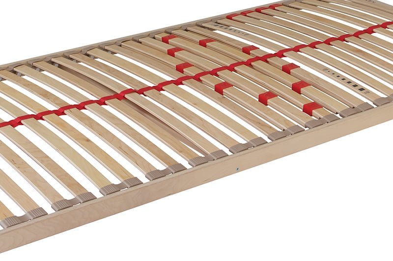 Kvalitní lamelový rošt za dobrou cenu – to je Primaflex. Postelový rošt s výklopem nožní části pomocí pístu s přístupem do celého úložného prostoru. Zdvih pomocí textilního úchytu usnadní každodenní manipulaci. Pružné lamely uložené ve dvojicích v kaučukových pouzdrech tvoří 3 anatomické zóny. Středový popruh zlepšuje stabilitu roštu. Posuvnými objímkami lze nastavit individuální tuhost v bederní části.