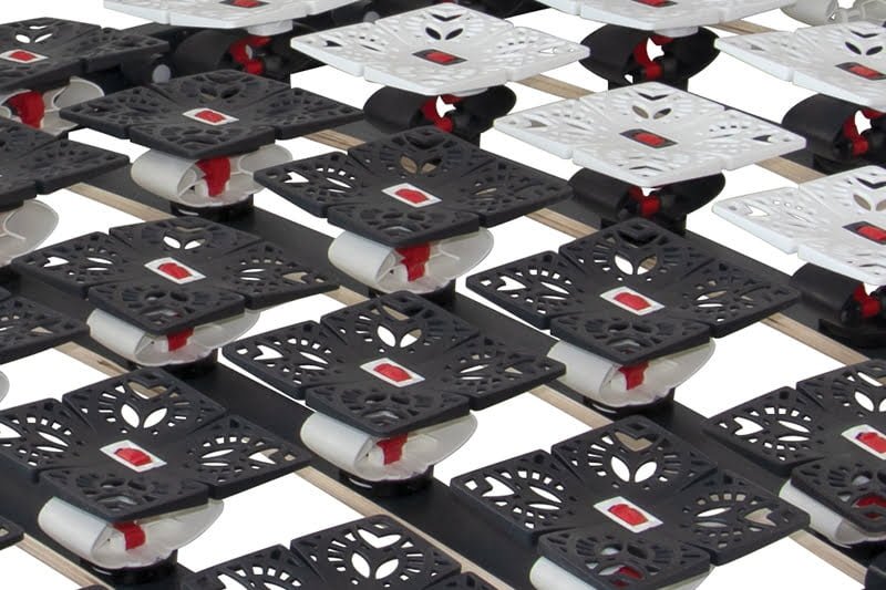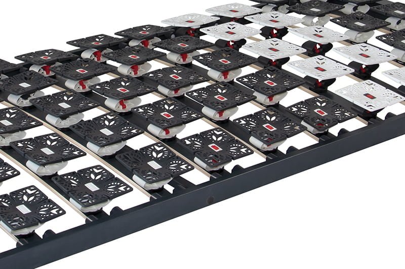 Zcela unikátní rošt netradičního vzhledu Varion, který vyniká především díky speciální konstrukci lehací plochy. Polohování hlavy i nohou oceníte při komfortním čtení a odpočinku. Pevná středová část se postará o lepší oporu beder. Snadné nastavení polohování textilním úchytem při zdravotních obtížích a únavě. Lehací plochu tvoří výkyvné talíře, které podpírají tělo v každém bodu a individuálně reagují na danou zátěž. Talíře se pohybují ve všech směrech, čímž dokonale kopírují zátěž těla. Tuhost talířů lze individuálně regulovat jak v ramenní, tak i bederní oblasti. Bodové nastavení pružnosti talířů je značnou výhodou při výrazných rozdílech v proporcích těla (zdravotní handicapy, úzká ramena a široké boky apod.). Profilované talíře umožňují velmi dobré provzdušnění matrace a zvyšují tak hygienu lůžka. Dřevěný rám roštu je opatřen fólií, která zabraňuje pronikání vlhkosti do roštu a vytváření prostředí pro výskyt bakterií a plísní. Delší životnost matrace zajistí přídavná lišta, která matraci rovnoměrně podepře po celé její ploše a zamezí tak deformaci jejich okrajů.