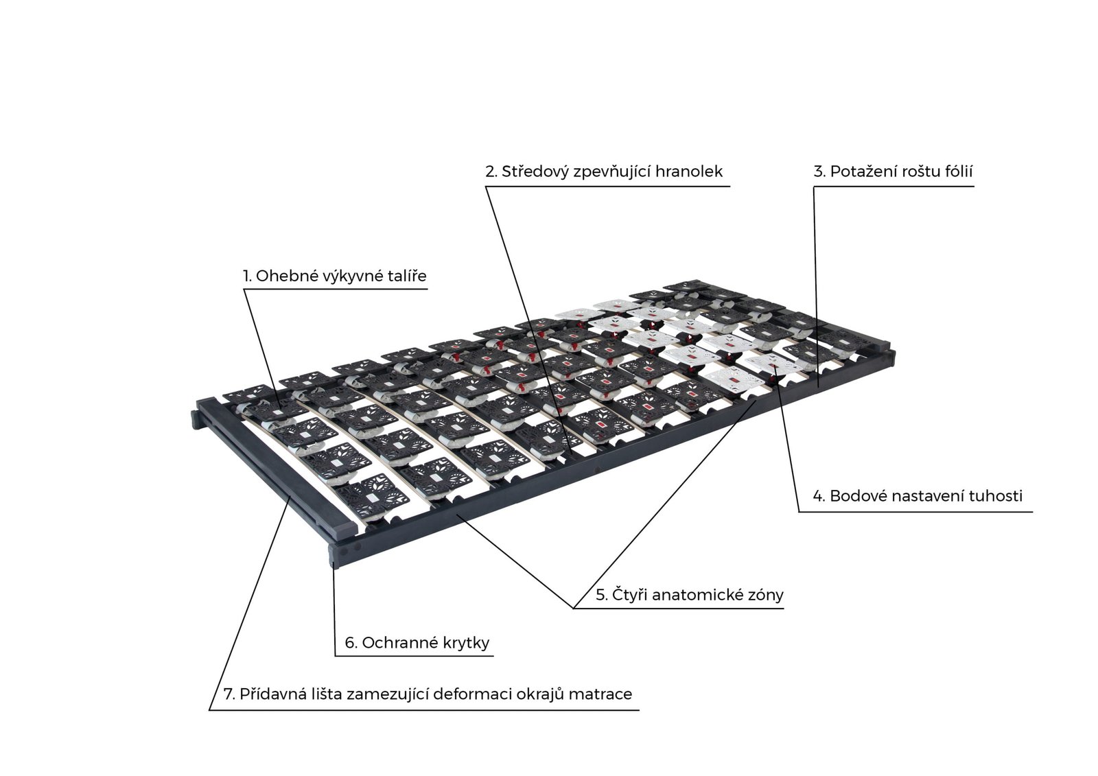 Zcela unikátní rošt netradičního vzhledu Varion, který vyniká především díky speciální konstrukci lehací plochy. Lehací plochu tvoří výkyvné talíře, které podpírají tělo v každém bodu a individuálně reagují na danou zátěž. Talíře se pohybují ve všech směrech, čímž dokonale kopírují zátěž těla. Tuhost talířů lze individuálně regulovat jak v ramenní, tak i bederní oblasti. Bodové nastavení pružnosti talířů je značnou výhodou při výrazných rozdílech v proporcích těla (zdravotní handicapy, úzká ramena a široké boky apod.). Profilované talíře umožňují velmi dobré provzdušnění matrace a zvyšují tak hygienu lůžka. Dřevěný rám roštu je opatřen fólií, která zabraňuje pronikání vlhkosti do roštu a vytváření prostředí pro výskyt bakterií a plísní. Delší životnost matrace zajistí přídavná lišta, která matraci rovnoměrně podepře po celé její ploše a zamezí tak deformaci jejich okrajů.